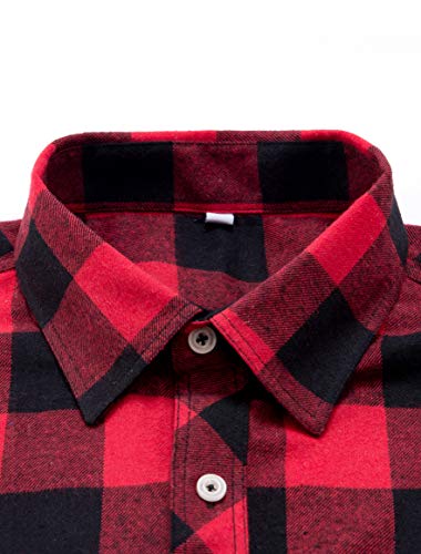 Alimens & Gentle Men's Button Down Regular Fit Long Sleeve Plaid Flannel Casual Shirts Color: Red, Size: Large