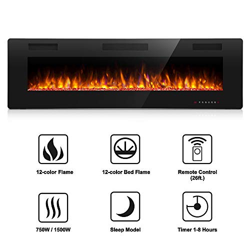 - Flexible Control Modes:Remote and touch screen make it more convenient to control every function of electric fireplace,power switch,1-8 hours timer control,independent switch of heating and flame,adjustable flame color and speed,sleep mode function.