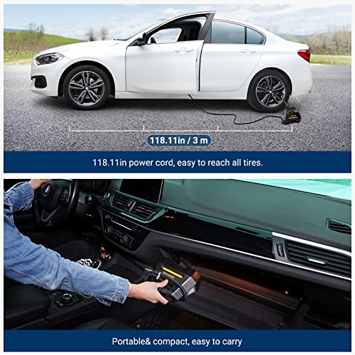- FAST INFLATION & ADVANCED ACCURACY: High-quality materials were sourced for this tire inflator as it can pump up your car's tires with 35 L/Min, it can inflate the 195/55/R15 car tire from 0 to 35psi under 5 minutes. Professionally calibrated to always return a reading within 1.5% of the pressure of your tire. Please NOTE that after 10-15 minutes of continuous use, let the air compressor rest and cool for an equal amount of time at a minimum before continuing use