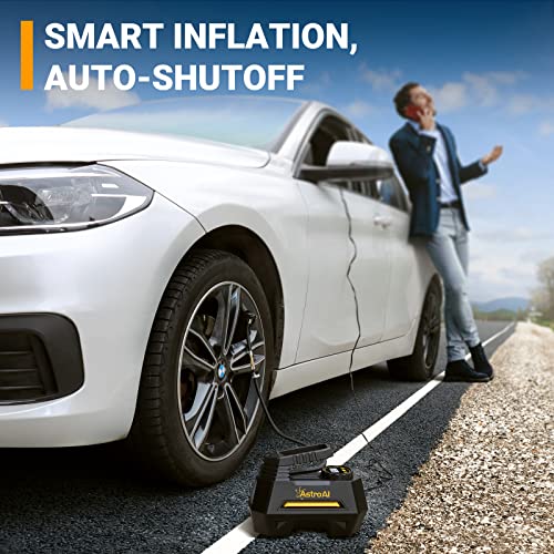 The AstroAI 100PSI portable air compressor quickly inflates your car's tires when you're on the go. Whether you're at home or on the road, checking and adjusting tire pressure are done quickly. Just set your car's recommended tire pressure into the programmable LCD screen and this little pump brings tires up to their correct pressure in a flash.