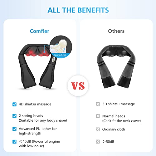 Comfier Shiatsu Neck and Shoulder Massager- 4D Deep Kneading Massage Pillow with Heat, Back Massager, Pillow Massager as Best Gift for Men, Women, Mom, Dad