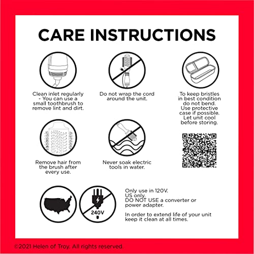 - CARE FOR YOUR VOLUMIZER: Clean air inlet regularly, remove hair from the brush after every use and do not wrap cord around the unit. To keep bristles in best condition let unit cool before storing